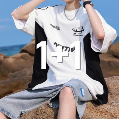[노프라브럼]1+1 남녀공용 여름 쿨 오버핏 축구 유니폼 블록코어 반팔 티셔츠 2컬러