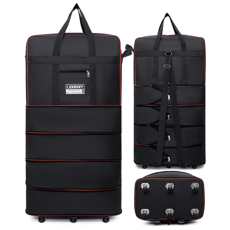 TEMU 대용량 접이식 항공 수하물 가방 다층 확장형 휴대용 여행 가방 옥스포드 천 범용 바퀴 경량 이동 가방 출장 여행 해외 여행 학술 여행 가방