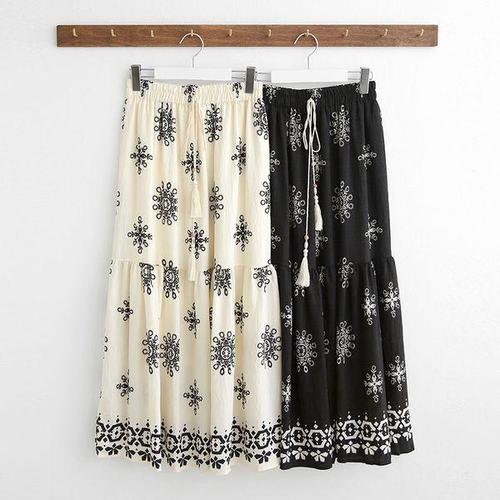 [다잇템]여성 마원단 히피 롱캉스 나염 테슬 스커트