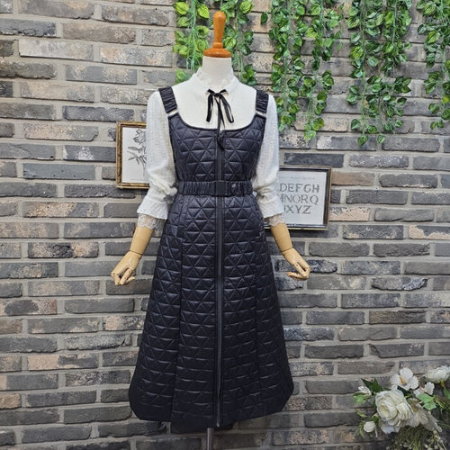 퐁당 / 앞지퍼 탈부착 미니백 벨트 세트 누빔 멜빵 원피스