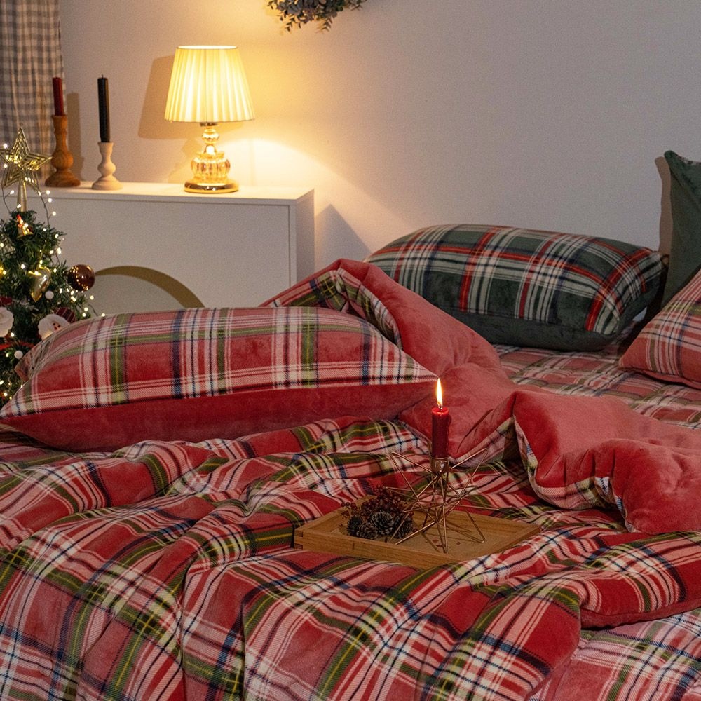 크리스마스 밀크 극세사 침구 2color 차렵이불 세트 베개커버 침구세트 이불