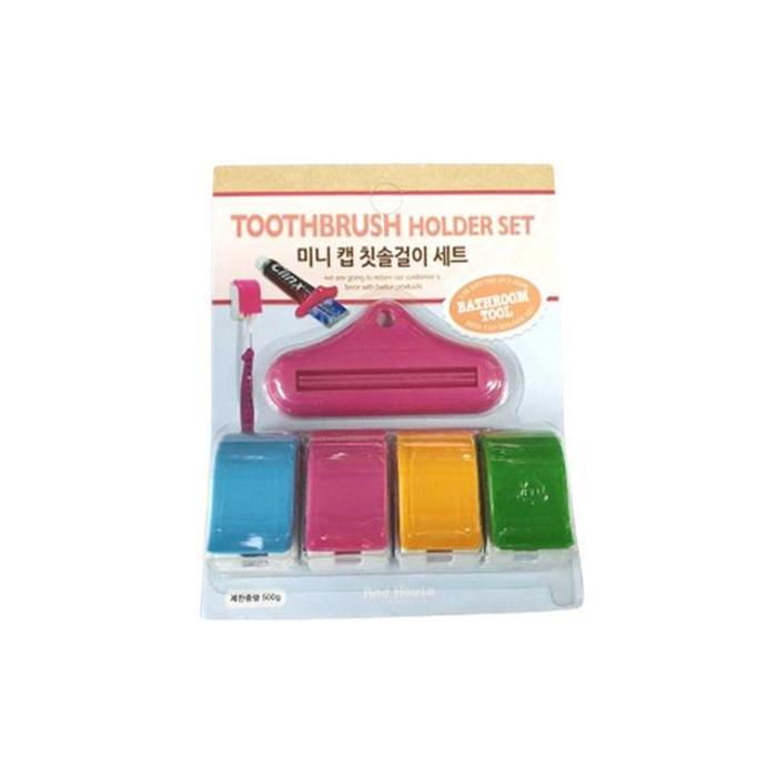 친절한탄씨 욕실 치약 짜개 디스펜서 흡착형 미니 칫솔캡 세트