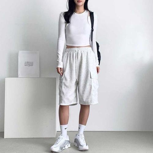여성 카고 여름용 반바지 트레이닝 주머니 5부 WFKBX88