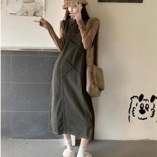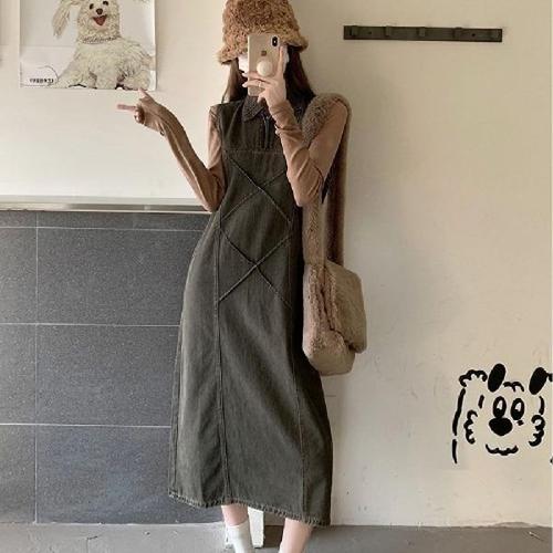 데님원피스 빈티지 데님 민소매 카라 캐주얼 롱 원피스 데일리룩