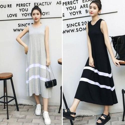 [엄지척]가로 줄무늬 여성 카라 민소매 롱원피스 여름 캐주얼_19914303_667501