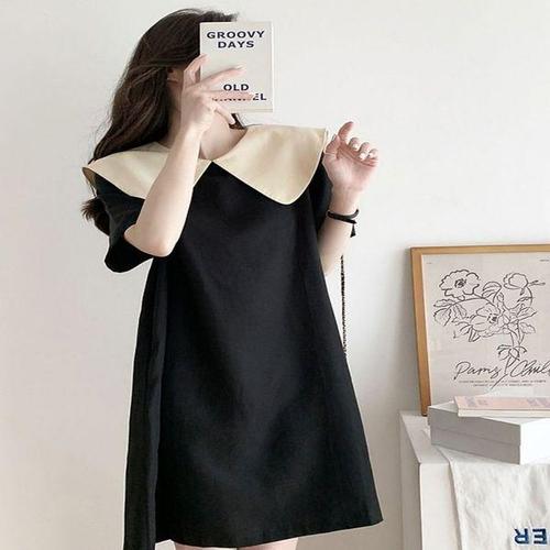 [모노무드]LMO 심플무드 배색카라맥시 하프티 드레스 심플