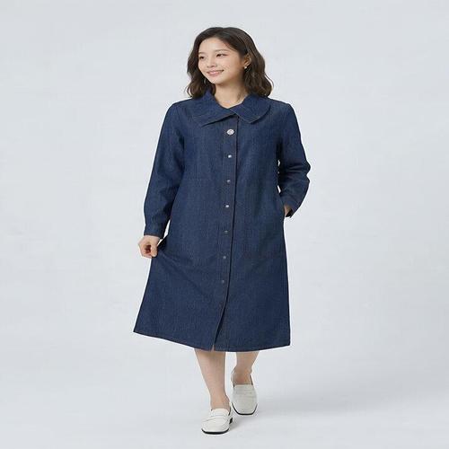 [오너클랜]인기상품 여성 편안한 V넥 카라 롱원피스 1P 허리 스트랩 단추 [WFK68XH_260405]