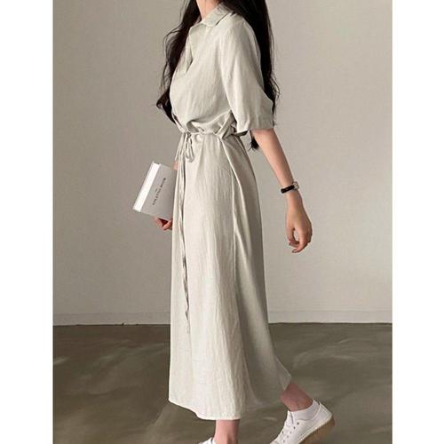[오너클랜]인기상품 여성 베이지 카라 롱 원피스 반팔 여름옷 [WFK82AI_260406]