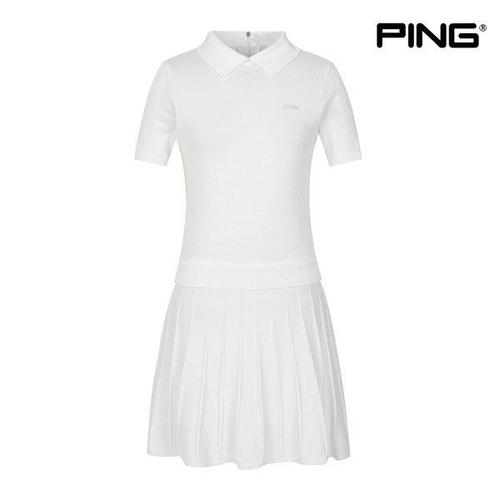 [핑]핑 여성 니트 카라 반팔 원피스 121C1JO292 WH 골프 반팔티
