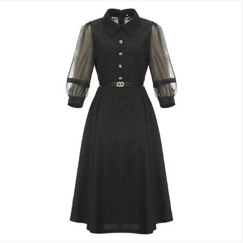[오너클랜]인기상품 여자 허리조임끈 카라 롱 민소매원피스 [WFK8J0P_260406]