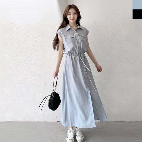 [오너클랜]인기상품 여성 패션 무지 카라 롱 원피스 여름 반팔 [WFD6828_260404]