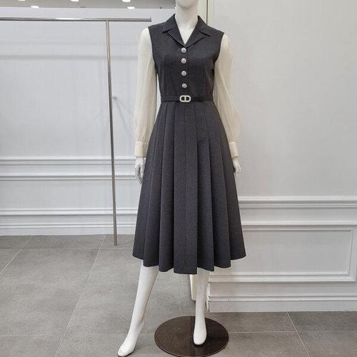 [미니멈]MD 카라넥 시스루 레이어드 플리츠 원피스 MD MYBAWO4310 M_CJ