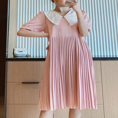 [브이와이][VY] 여자 카라 SS 플리츠 아코디언 반소매 빅 원피스_13617762_588847