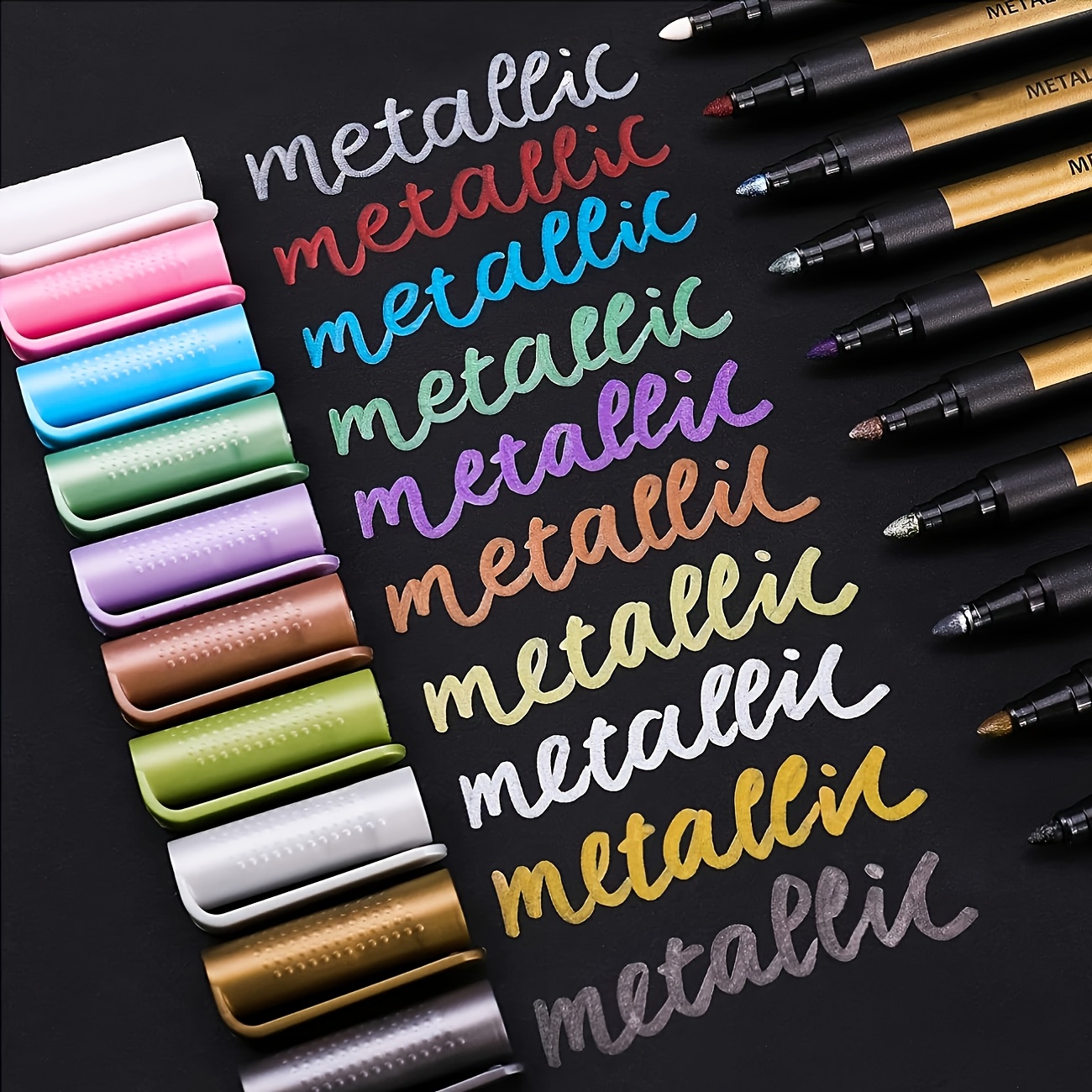 TEMU 10개 세트 메탈릭 마커 펜 - 방수, 혼합 색상, 중간 굵기, 플라스틱 표면 호환 가능, 페인팅, 돌 공예, 카드 만들기, 스크랩북, DIY 포토 앨범용