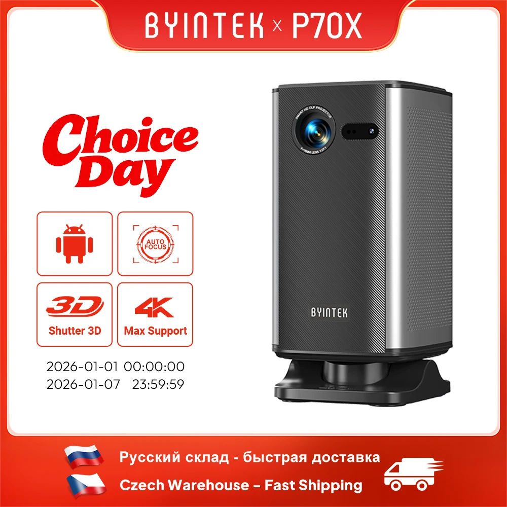 BYINTEK P70X 휴대용 미니 프로젝터(배터리 내장) 4K 지원 야외 영화용 3D Wifi 야간 홈 시어터 프로젝터