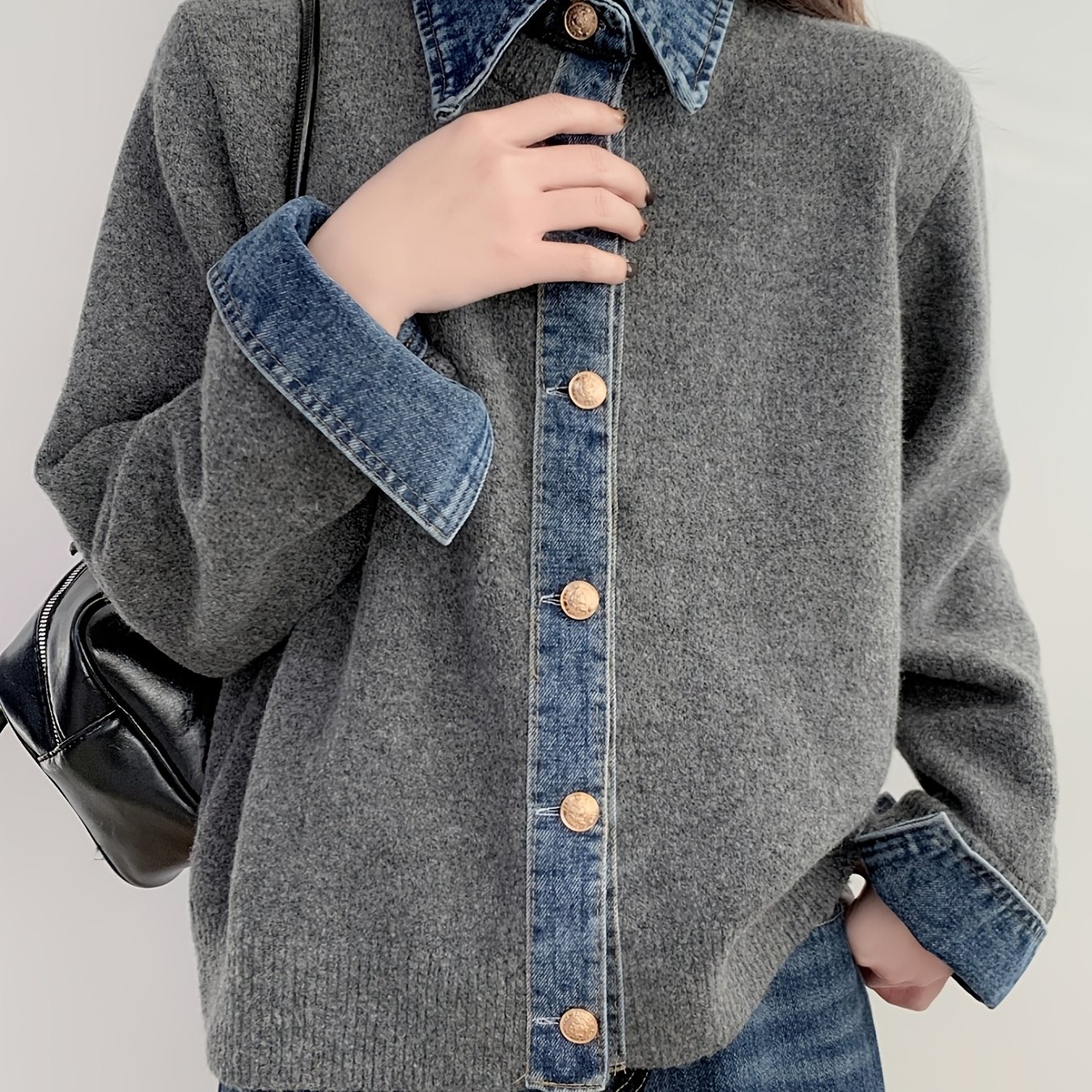 TEMU 일본 스타일과 한국 스타일의 블렌딩이 특징인 새로운 트렌디한 가을/겨울 컬렉션. 우아하면서도 캐주얼하며, 직장에 완벽합니다. 이 고품질 디자인에는 데님 패치워크 칼라와 부드러운 울 소재의 긴소매가 포함되어 있습니다.