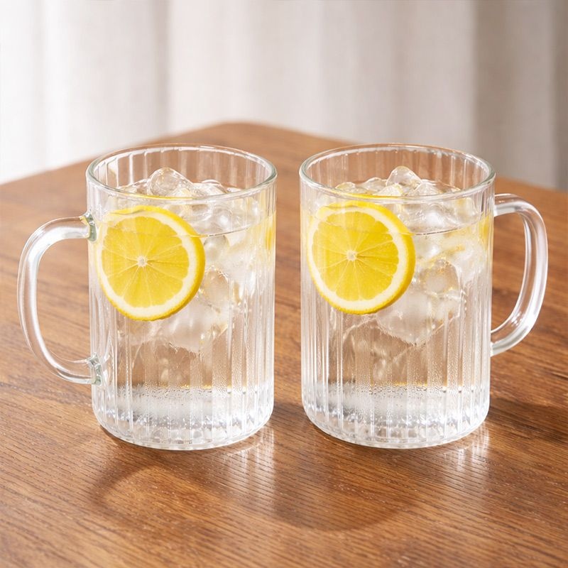 홈카페 우드 손잡이 내열유리 머그컵 450ml 2P