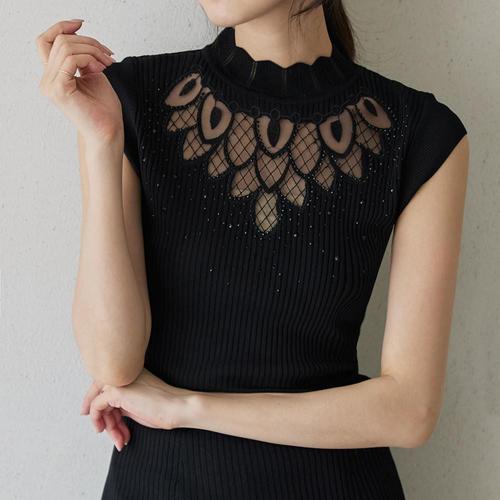 [WPBG]시스루 펀칭 비즈 골지 캡나시 티셔츠_3color
