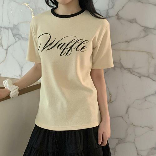 [미라클세븐]여성 일상용 캐주얼 경쾌한 와플 컬러 블록 반팔티