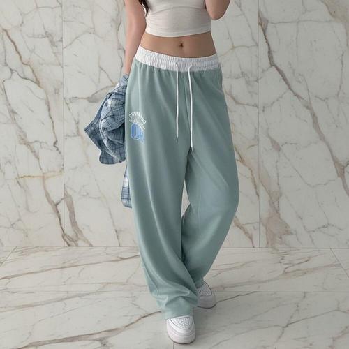 [미라클세븐]여성 컬러 블록 봄 트레이닝 프린트 와이드 팬츠 힙한 바지