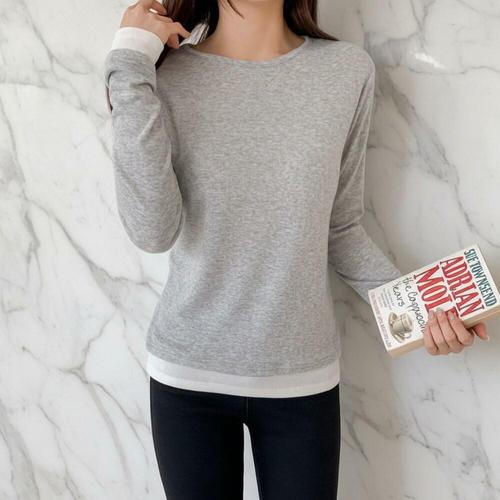 [미라클세븐]여성 이중 레이어 라운드넥 스판 컬러 배색 티셔츠