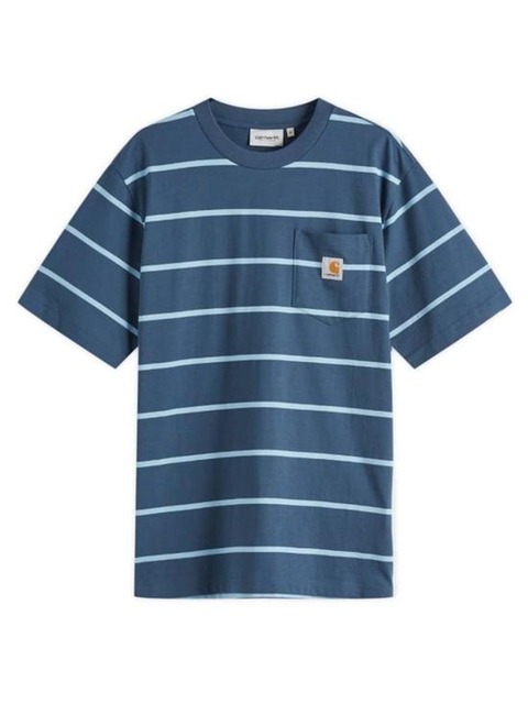 칼하트 WIP 남성 Carhartt WIP Dodson Stripe Pocket T Shirt Dodson Stripe Horizontal Misty Sky