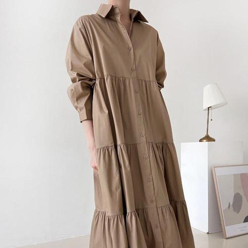 [샵앤][샵앤] 여성 카라 단추 4단 캉캉 셔링 롱원피스 ARA-WDR-4949-진베이지