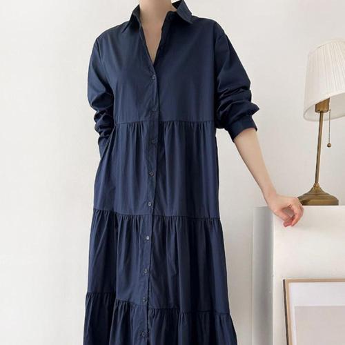 [샵앤][샵앤] 여성 카라 단추 4단 캉캉 셔링 롱원피스 ARA-WDR-4949-네이비