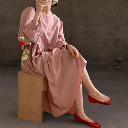 [신상오픈런]여성 링클 빅사이즈 캉캉 가을용 임산부 분홍 롱드레스
