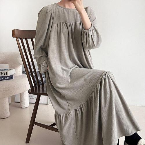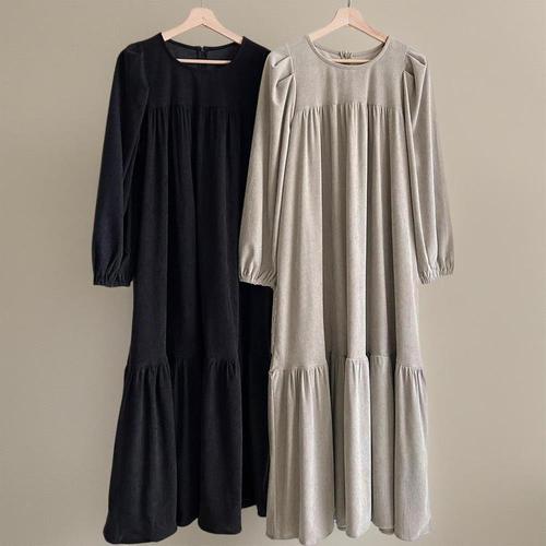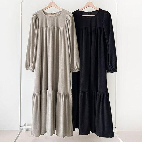 [옷자락] 여성 가을 빅사이즈 셔링 캉캉 퍼프 골덴 롱드레스