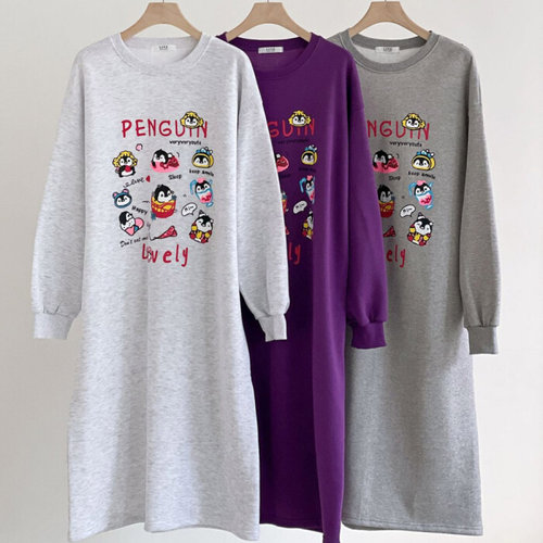 나야홍 / 빅사이즈원피스 V963L601 펭귄캐릭터기모원피스 LI