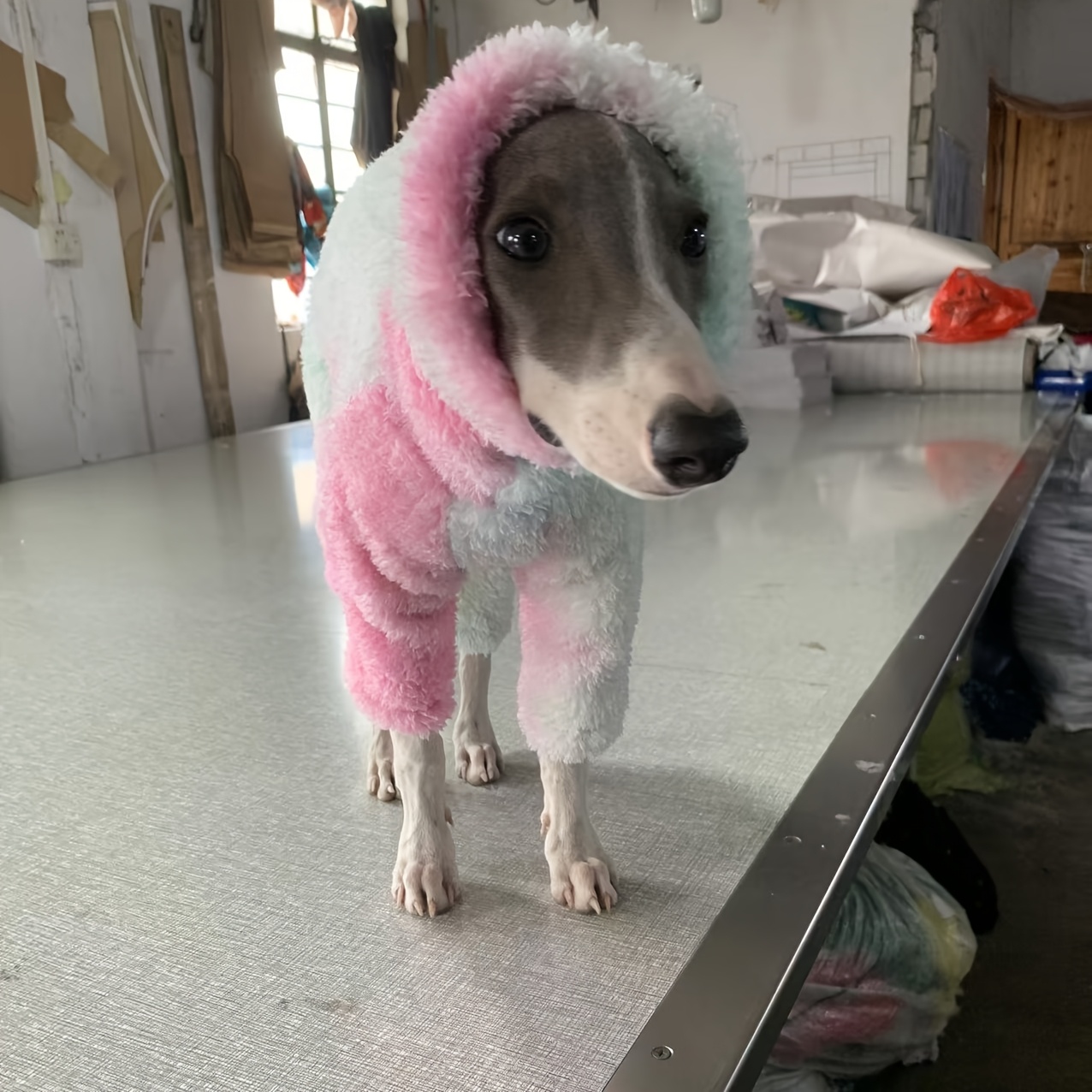TEMU 유럽 및 미국 패션, 트렌디, 혼합 색상, 프린트 플리스, 따뜻함, 얼룩말, 선물용 강아지, 사냥견, 린타이 강아지, 퓨어 강아지, 토끼 사냥견, 하이 칼라 목, 가을/겨울 따뜻한 점프수트 카테고리: 점프수트