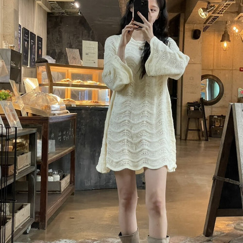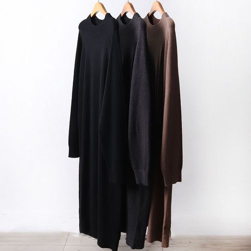 해피유통 추동 캐시미어 롱 스웨터 원피스 니트 루즈핏 중년 솔리드 원피스 BJJ001