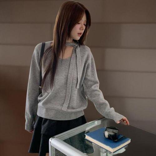 [옷자락]여성 캐시미어 머플러 세트 브이넥 루즈핏 니트