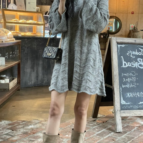 [유닛]리사이클 캐시미어 홀가먼트 케이블 롱 니트 원피스 [UFI4-KOP475C]