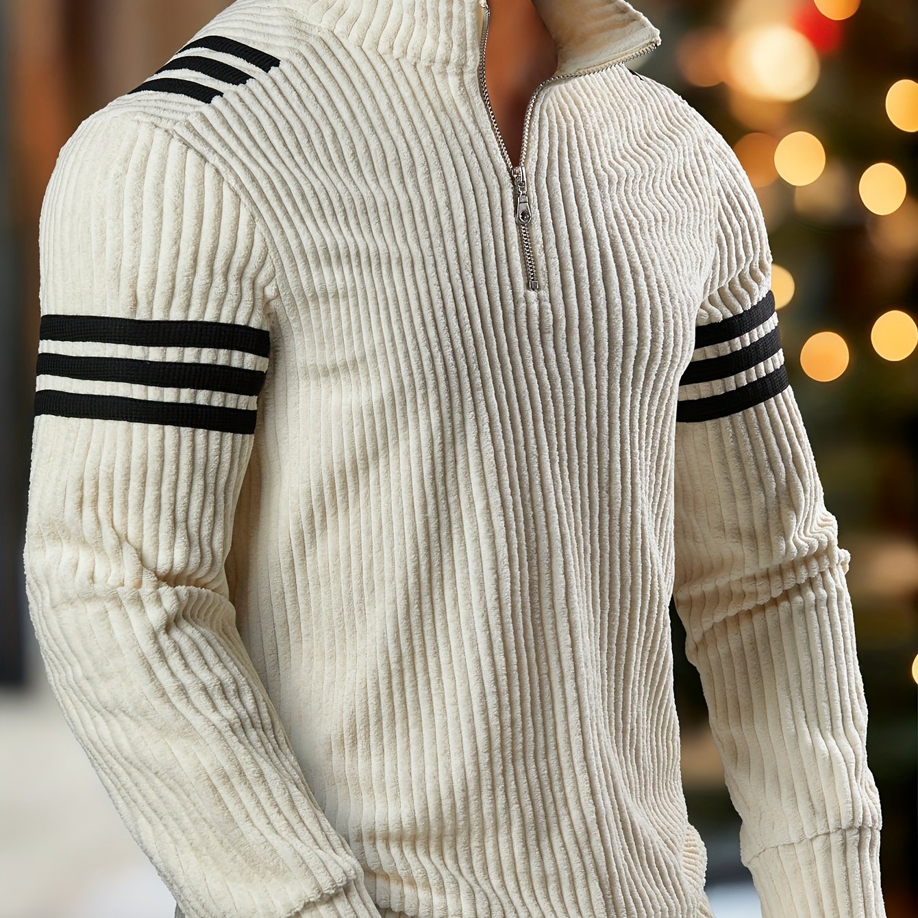 TEMU 남성 패션 캐주얼 스포츠웨어, 가을/겨울 따뜻한 기모 안감 니트 스웨터, 컬러 블록 , 지퍼업 라운드넥 긴소매, 및 야외 활동에 다용도, 루즈핏, 중간 정도 신축성, 단색 디자인, 니트 원단
