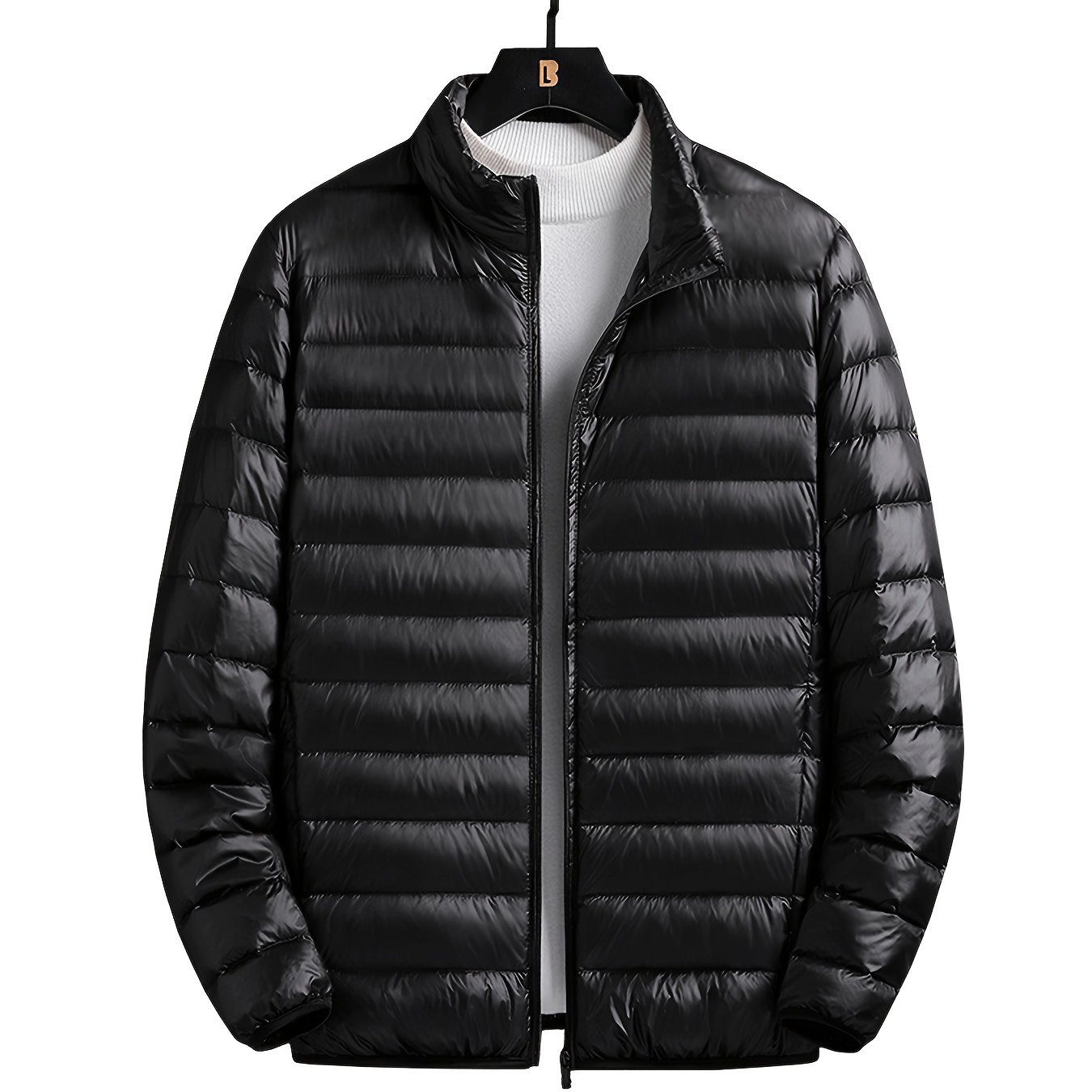 TEMU 남성용 경량 하이로프트 재킷 - 스탠드 칼라 지퍼업 코트, 포켓 포함, 루즈핏 캐주얼 아우터, 일상 및 포멀 행사용 - 올 시즌 충전재