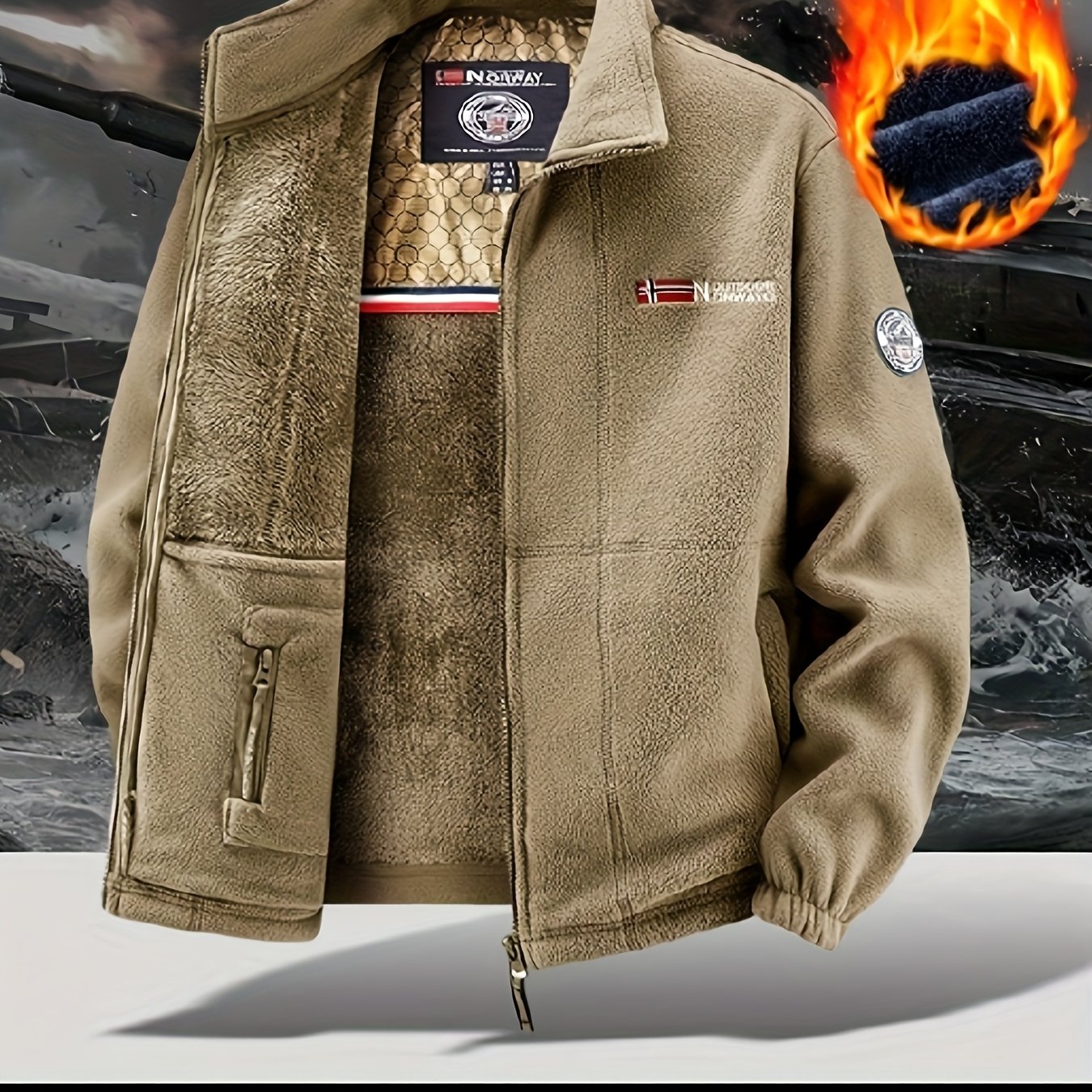 TEMU 새로운 가을/겨울 플리스 재킷 | 그래핀 안감이 있는 트렌디한 플리스 원단, 캐주얼 스타일, 긴소매, 지퍼 클로저, 포켓 디테일, 두꺼운