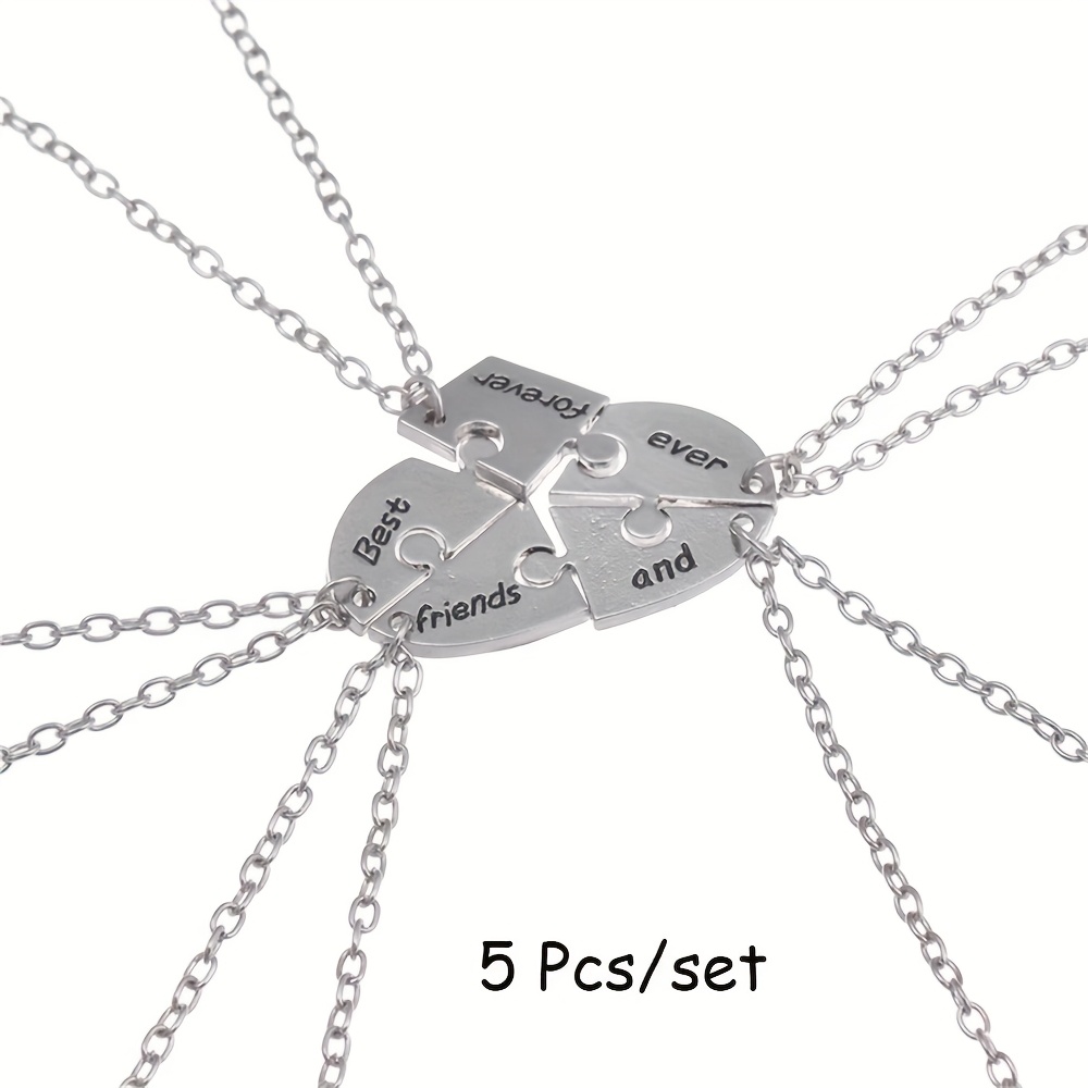 TEMU 친구를 위한 사랑의 하트 모양 조각 펜던트 목걸이 5개 세트 - 학교, 베스트 프렌드, 우정을 위한 인기 파티 주얼리 액세서리 선물, 조절 가능한 멀티레이어 체인 초커, 스타일 디자인, 청소년용, 감성적인 주얼리,파티 액세서리,스타일리시 초커,트렌디한 목걸이,내구성 있는 액세서리,고급 주얼리,초커 브레이슬릿,레이어드 목걸이,주얼리 애호가