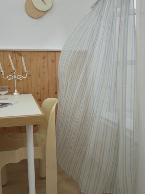 [라오비] 클라우스 스트라이프 쉬폰 커튼_옐로우 블루, 그레이블루