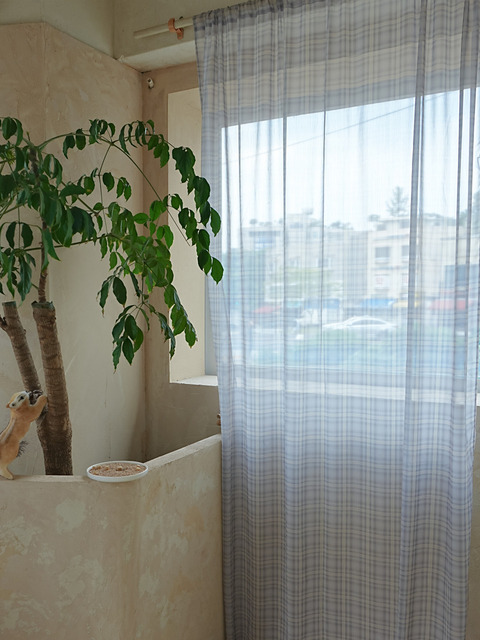 [라오비] 파이브 체크 쉬폰 커튼_옐로우 그레이, 퍼플 그레이