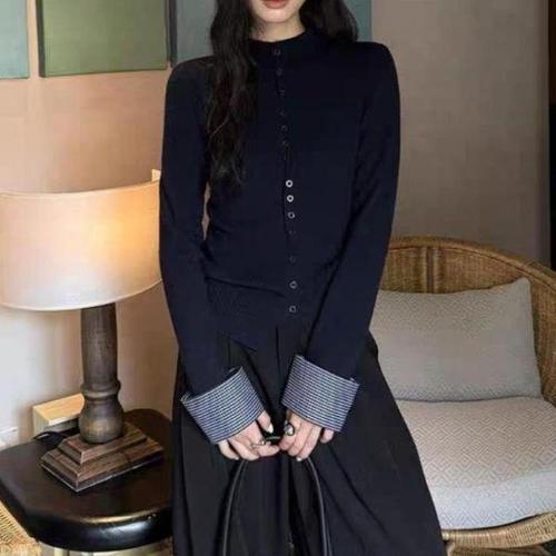 [다잇템]여성 슬림 스웨터 베이직 소매커프스 남방 반목