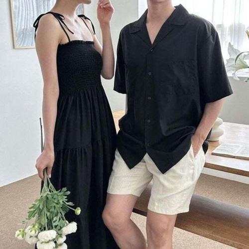 [모노무드]모노무드 여름 커플스냅 룩 반팔 셔츠 민소매 원피스 비치웨어