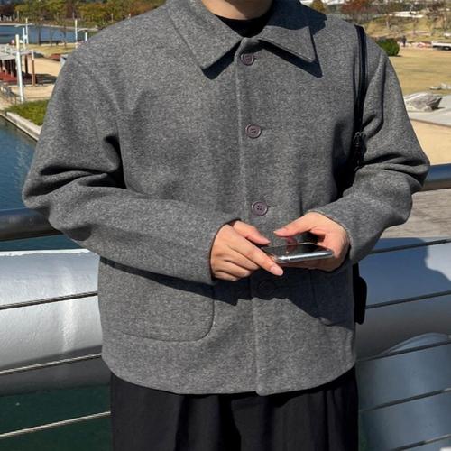 [모노폴로지]미니멀 루즈핏 카라 울 숏 코트 자켓 벌룬 숏코트 코트자켓 커플룩 가디건 하프 코트