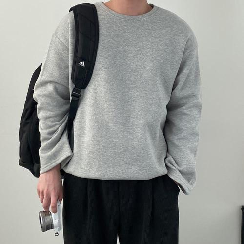 [모노폴로지]어깨넓어지는 겨울 무지 기모롱슬리브 오버핏 커플 무지 라운드 레이어드 티셔츠 5color