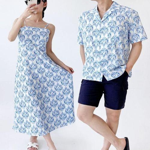 [모노무드]모노무드 커플 여름 바캉스 화이트 남자 셔츠 여성 원피스 휴양지 의상