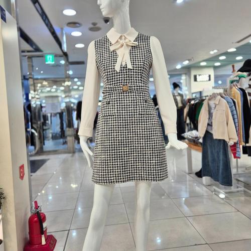 [케네스레이디](센텀시티점)[BYLYNN] 리본 벨티드 트위드 원피스 EWOPOB0400