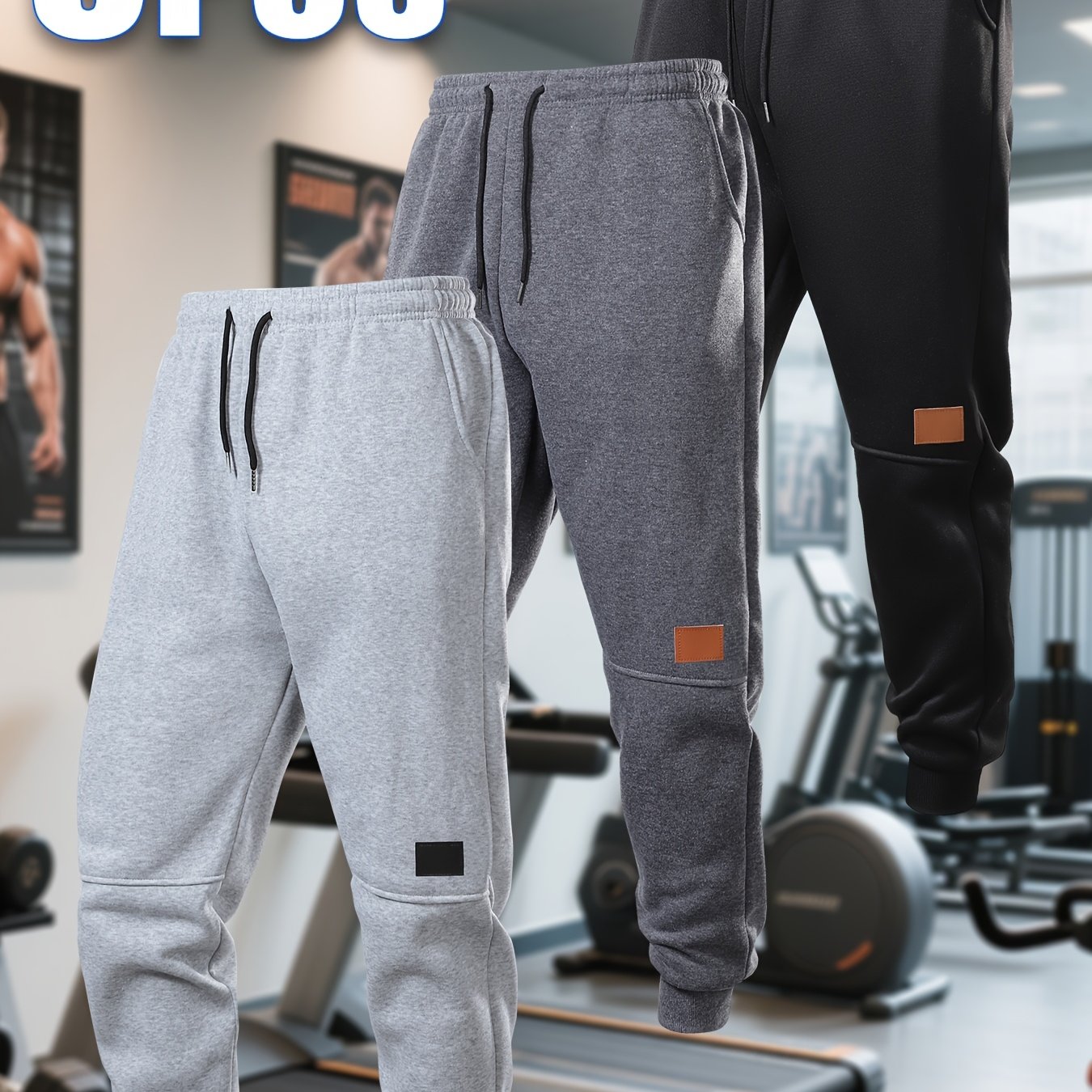 TEMU 편안한 착용감의 남성용 조거 팬츠 3종 세트 | 탄성 있는 무릎 패치, 캐주얼 드로스트링 허리, 그리고 일상복으로 적합한 단색 디자인. 가벼운 플리스 소재로 따뜻함을 제공하고 운동 중에 체온을 유지하는 데 도움을 줍니다.