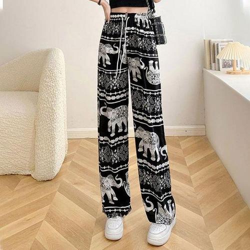 [셀러허브_여성트랜드패션]ONM 에스닉 코끼리 패턴 밴딩 와이드 팬츠 보헤미안