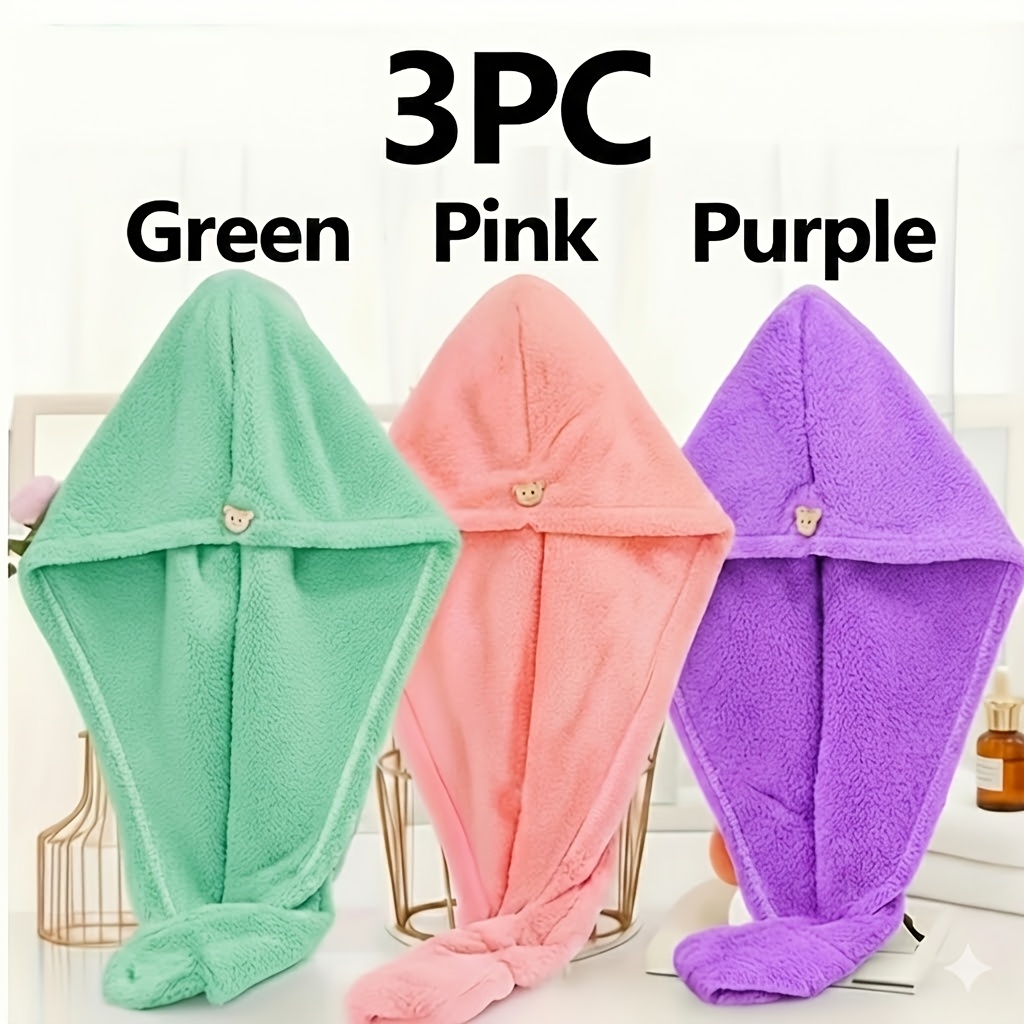 TEMU 3개입 여성용 마이크로파이버 싱글 레이어 헤어 타월 랩, 스냅 버튼, 젖은 머리와 긴 곱슬머리에 적합, 부드러운 헤어 드라이 타월